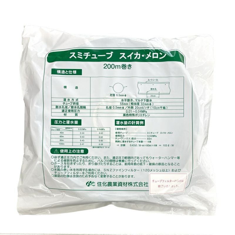 住化農業資材 潅水チューブ スミチューブ25 メロン・スイカ 200m 1巻 マルチ下向け 灌水チューブ
