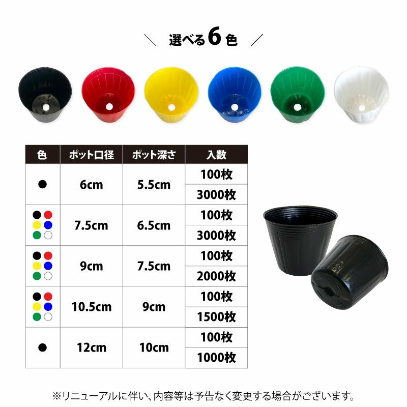 他の画像を見る カラーポット 育苗ポット 選べる6色 ポリポット 黒・緑・青・赤・黄・乳白/丸型/口径6cm・7.5cm・9cm・10.5cm・12cm/色・サイズ・入数を選択 販売価格 ¥ 165 税込 〜 販売価格 ¥ 税込 詳細を見る お気に入りに登録する (0)