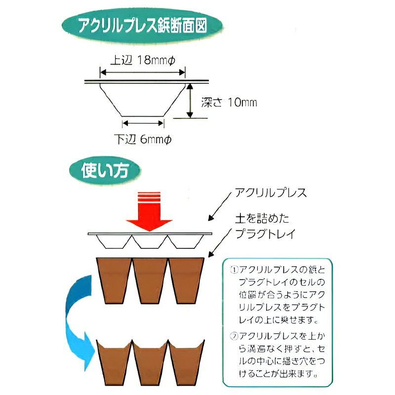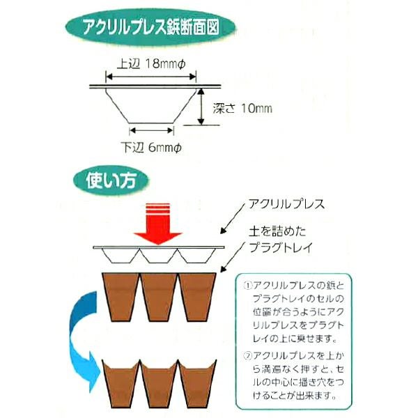 他の画像を見る 【播種作業の便利アイテム!】 住化農業資材 アクリルプレス タキイセルトレイM型用 AZ-200 (200穴) 販売価格 ¥ 19,250 税込 カートに入れる お気に入りに登録する (0)