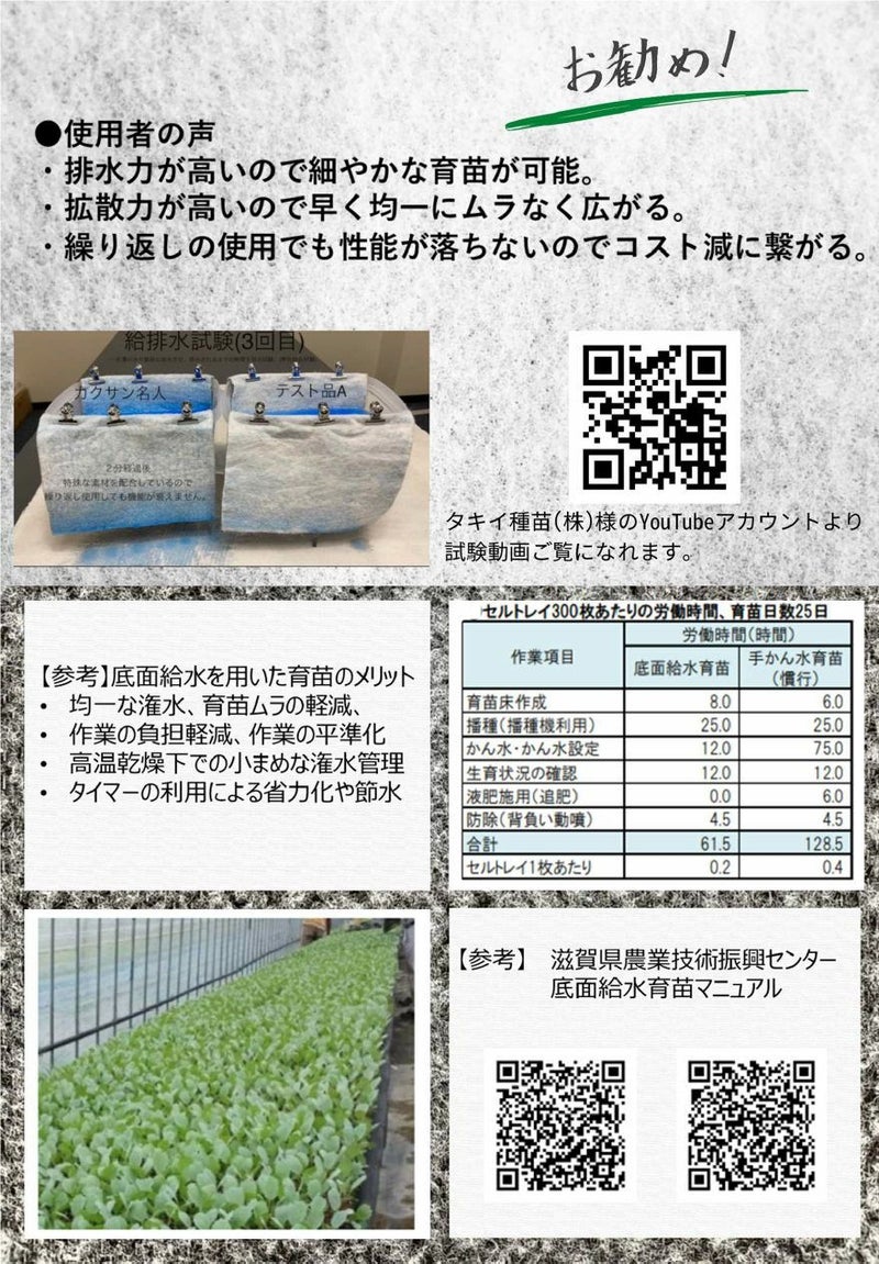 他の画像を見る 服部猛 底面給水シート カクサン名人 (白/黒) 厚さ2mm 幅100cm×長さ50m 底面給水育苗 均一潅水 販売価格 ¥ 39,050 税込 詳細を見る お気に入りに登録する (0)