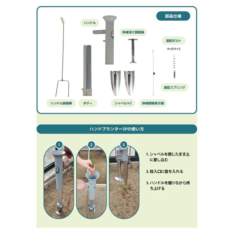 他の画像を見る 小・中規模農家の方にオススメ!立ったまま楽々作業! KS FARM TOOL 野菜苗移植機 ハンドプランター SP 販売価格 ¥ 16,940 税込 カートに入れる お気に入りに登録する (0)