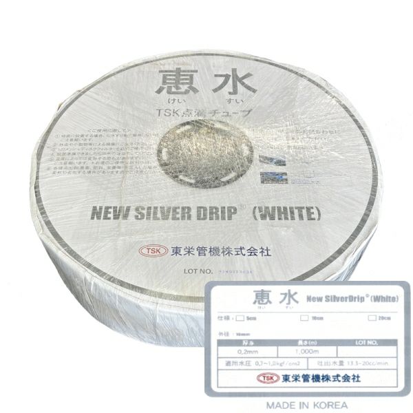 他の画像を見る 灌水 散水 水やり 農業資材 業務用 東栄管機 点滴灌水チューブ 恵水 シルバードリップ ホワイト 0.2mm×1000m ピッチ選択(5cm/10cm/20cm) 販売価格 ¥ 26,400 税込 カートに入れる お気に入りに登録する (0)