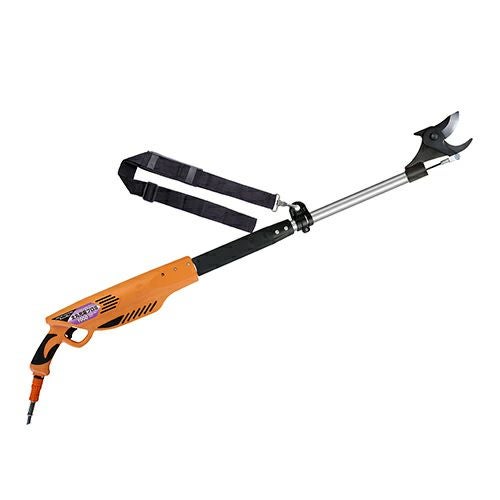 トリガーを引くだけで太枝、高枝を瞬間切断可能なパワータイプの充電式太枝切鋏。