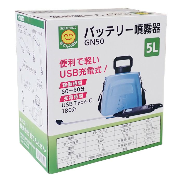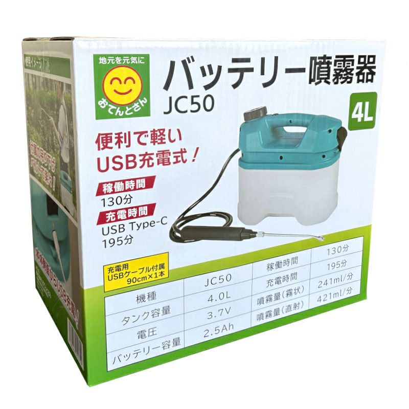 他の画像を見る 家庭菜園やガーデニングの葉面散布に バッテリー噴霧器 JC50 容量4L USB充電式 散水 水やり 農薬散布 販売価格 ¥ 3,938 税込 カートに入れる お気に入りに登録する (0)