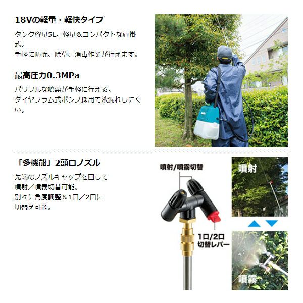 他の画像を見る Makita マキタ 充電式噴霧器 MUS054DWF タンク容量5L 18Vリチウムイオンバッテリ+充電器付属 販売価格 ¥ 32,780 税込 カートに入れる お気に入りに登録する (0)