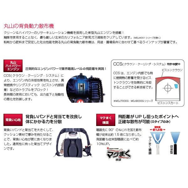 他の画像を見る 丸山製作所 エンジン 背負動噴 MDJ7000G-26 26L 2サイクルエンジン 粉剤 粒剤 肥料まで散布OK 販売価格 ¥ 136,400 税込 カートに入れる お気に入りに登録する (0)