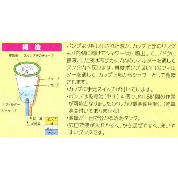 他の画像を見る 【ぶどう(ブドウ)のジベレリン処理を省力化!】 乾電池式ジベ処理器 らくらくカップ2 カップサイズ特大 (ぶどう・ジベレリン) 販売価格 ¥ 30,250 税込 カートに入れる お気に入りに登録する (0)