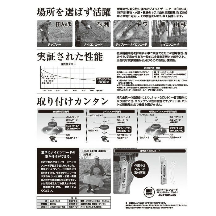 他の画像を見る 刈払機 草刈機 草刈り 地ズリ作業 刈刃 ナイロンコード対応 刈払機用安定板 ジズライザーエアー ZAT-H24B 販売価格 ¥ 2,178 税込 カートに入れる お気に入りに登録する (0)