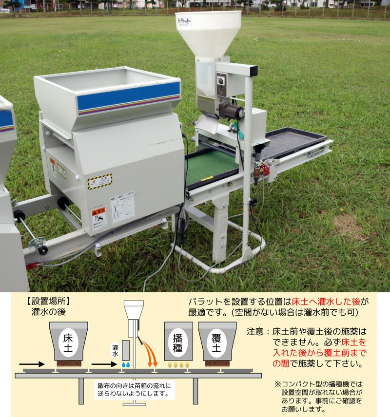 他の画像を見る 適合箱処理剤多数!据置式で播種機のすきまに置くだけ 美善 播種同時散布 パラット KS-30 箱処理剤施薬機 水稲育苗 販売価格 ¥ 93,000 税込 在庫切れ 詳細を見る お気に入りに登録する (0)
