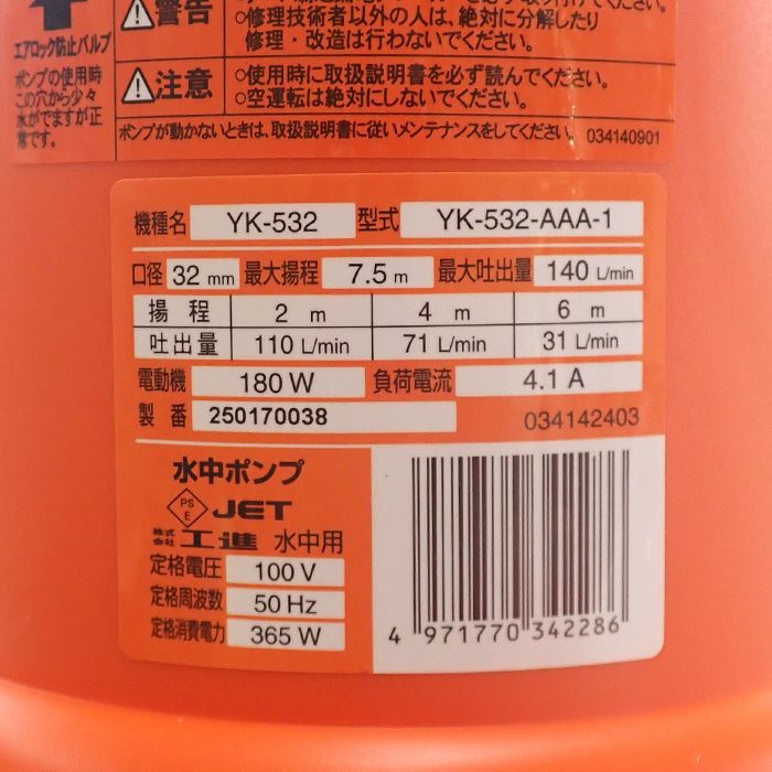 他の画像を見る 灌水 潅水 散水 水の入れ替え 給水 排水 【東日本 50Hz専用】 KOSHIN 工進 簡易汚水用水中ポンプ ポンスター YK-532 販売価格 ¥ 14,080 税込 カートに入れる お気に入りに登録する (0)