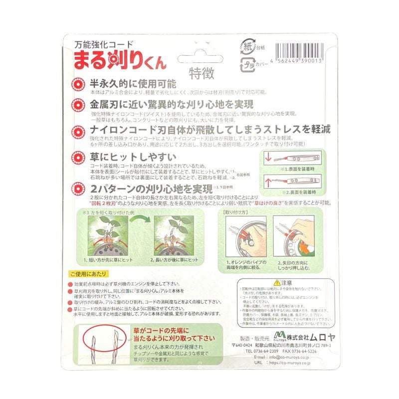 他の画像を見る ムロヤ 万能ブラシ草刈り刃 まる刈りくん GBV1 プロ用強化特殊ナイロンコード クリスタルドラゴン クリスタルドラゴンJr 2種2本付 刈払機 刃 草刈 除草作業 販売価格 ¥ 4,268 税込 カートに入れる お気に入りに登録する (0)