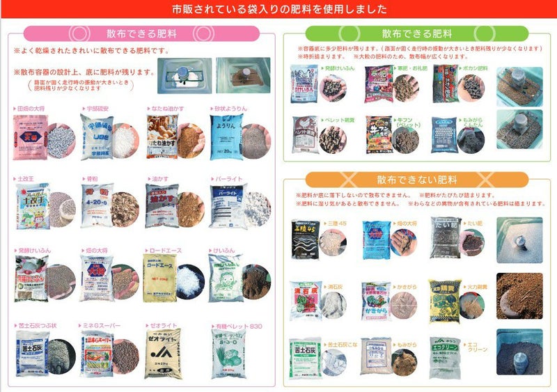 他の画像を見る (北海道・沖縄・離島発送不可) KAZ 電動肥料散布機 撒きざんまい取り付けタイプ バッテリー付き KT-60ELB 容量60L 販売価格 ¥ 118,800 税込 カートに入れる お気に入りに登録する (0)