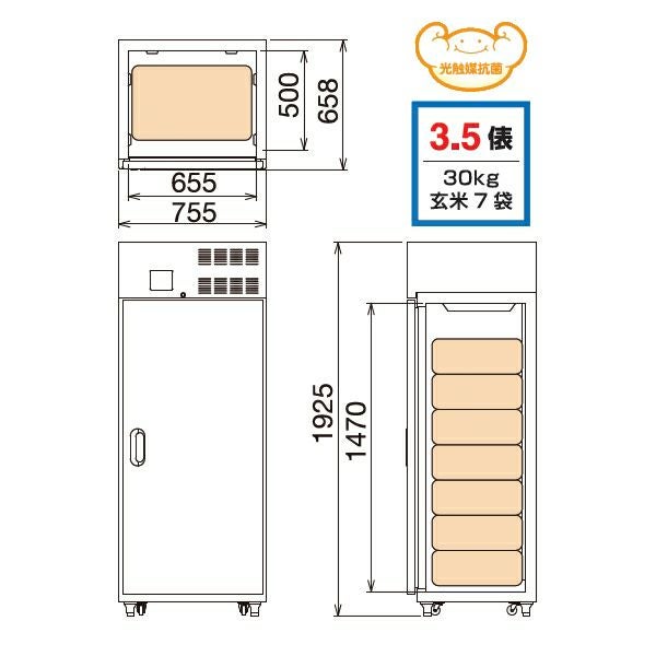他の画像を見る 【送料・設置無料】【冷却装置・筐体とも安心の日本製】 丸山製作所 玄米保冷庫 7袋用 3.5俵 MRF007M-3 (玄米・農産物保冷庫) 販売価格 ¥ 316,800 税込 在庫切れ 詳細を見る お気に入りに登録する (0)