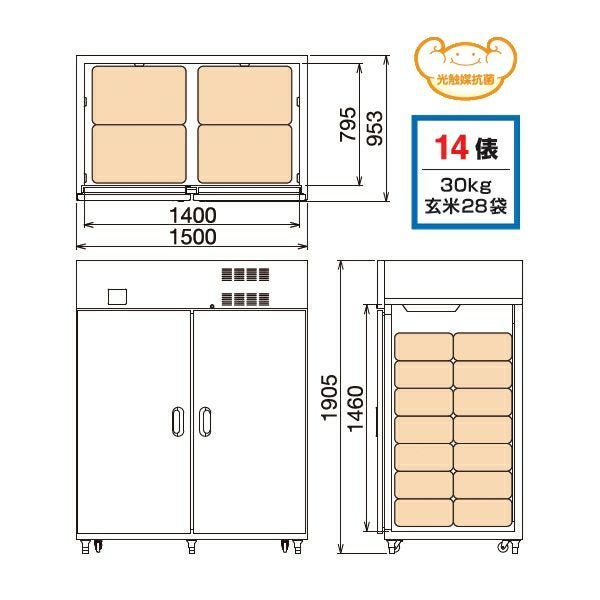 他の画像を見る 【送料・設置無料】【冷却装置・筐体とも安心の日本製】 丸山製作所 玄米保冷庫 14袋用 7俵 MRF014M-3 (玄米・農産物保冷庫) 販売価格 ¥ 338,800 税込 在庫切れ 詳細を見る お気に入りに登録する (0)