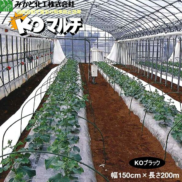 みかど化工 KOマルチ 黒(KOB) 厚み0.02mm 幅150cm×長さ200m 無孔 3本セット