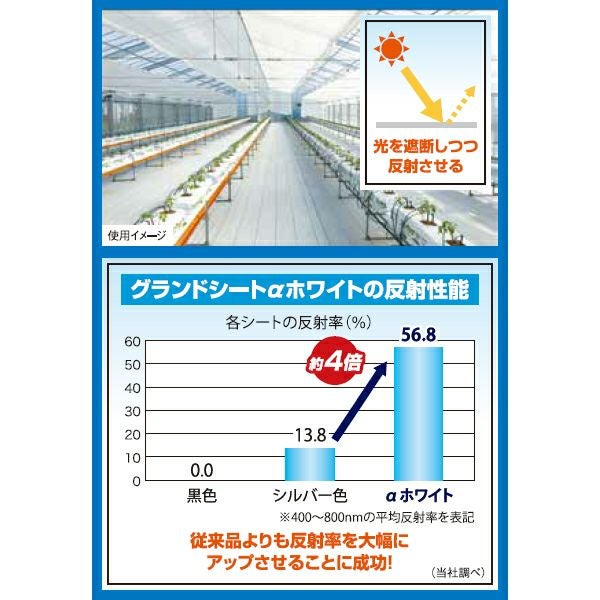 他の画像を見る 光合成・果実の色付き促進 日本ワイドクロス アグリシートシャインホワイト (高反射防草シート) 幅4m×長さ50m 販売価格 ¥ 41,800 税込 カートに入れる お気に入りに登録する (0)