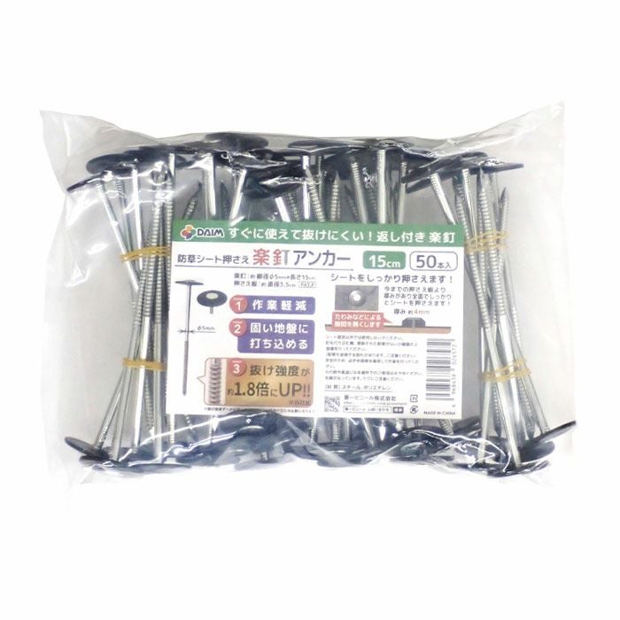 他の画像を見る シート押さえ 防草シート固定 固定ピン 押さえ板 ワッシャー DAIM 防草シート押さえ 楽釘アンカー 長さ15cm 50本入 販売価格 ¥ 1,958 税込 カートに入れる お気に入りに登録する (0)