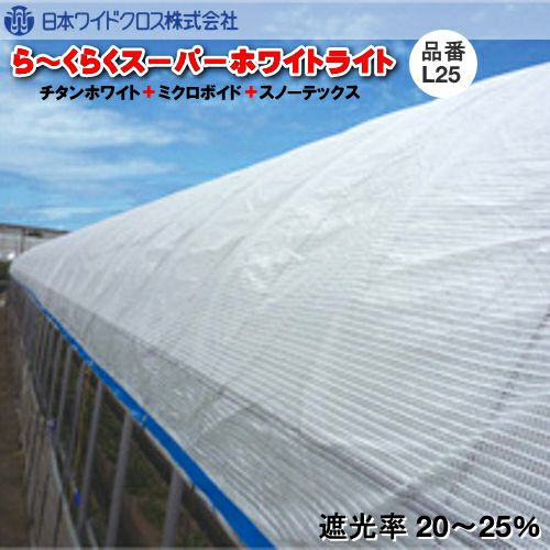 他の画像を見る 【日本ワイドクロス/メーカー直送】 遮熱資材 ら~くらくスーパーホワイトライト L25 (遮光率20~25%) 幅を選択し数量で長さ(m)を入力 販売価格 ¥ 477 税込 詳細を見る お気に入りに登録する (0)