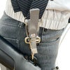 ・緊急脱着機能付き、ゴム部分を引くことで即座に刈払機を身体から離すことができます。