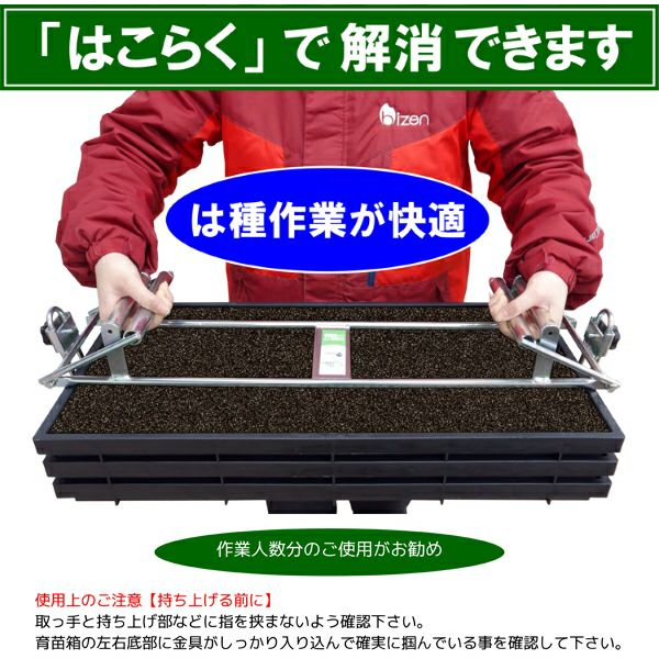 他の画像を見る 手が汚れない!指先が痛くない!手袋が挟まれない! 美善 水稲育苗マット箱つかみ機 はこらく HKB-31 苗箱3枚用 育苗箱運搬におすすめ 販売価格 ¥ 22,000 税込 詳細を見る お気に入りに登録する (0)