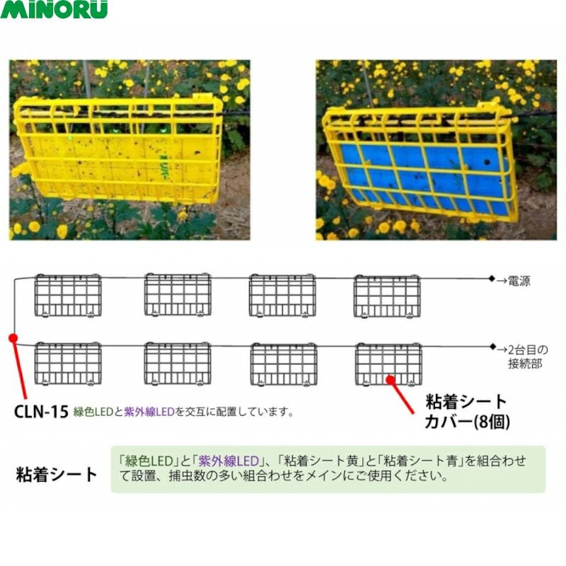 緑色LEDと紫外線LED、粘着シート黄・青を組み合わせて設置いただき、捕虫数の多い組合せをメインでお使いいただきます。