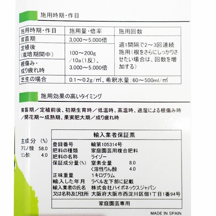 他の画像を見る 【バイオスティミュラント資材】【アミノ酸配合】 ハイポネックス ライゾー 1kg RHYZO 発根伸長促進粉末液肥 販売価格 ¥ 14,000 税込 カートに入れる お気に入りに登録する (0)