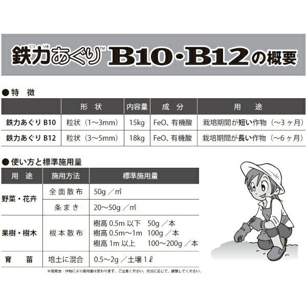 他の画像を見る 【葉色改善】【根張りの強化】【2価鉄供給材】 植物活性材 鉄力あぐりB12 18kg 栽培期間が長い作物向き 販売価格 ¥ 15,180 税込 カートに入れる お気に入りに登録する (0)