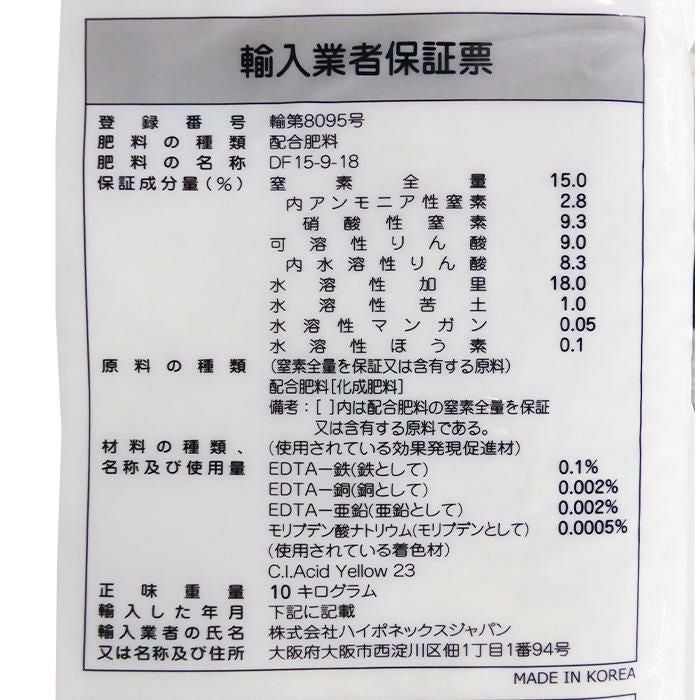 タキイ ドリップファーム肥料 DF3号 10kg 点滴養液土耕栽培・点滴養液栽培用肥料