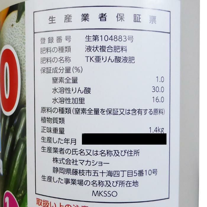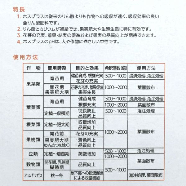 OAT 亜リン酸液肥 ホスプラス (0-31-25) 1L 【浸漬処理、潅注処理、葉面散布】