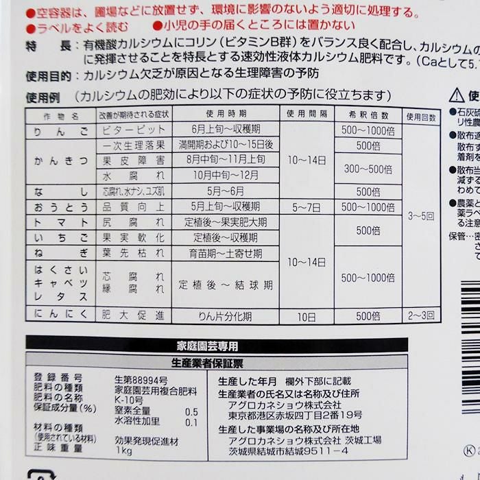 速効性カルシウム液肥 ハイタック-C 1kg コリン配合 家庭園芸用複合肥料
