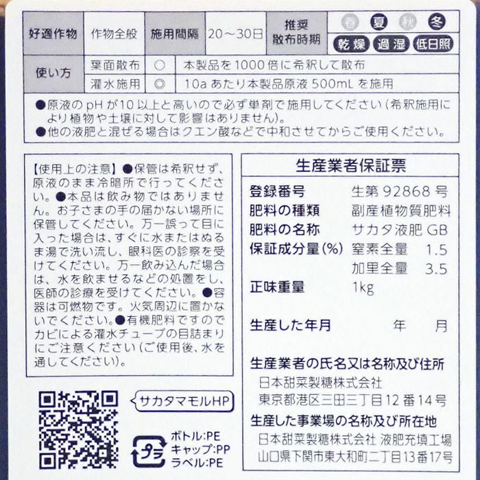 有機の液肥 サカタ液肥GB 1kg