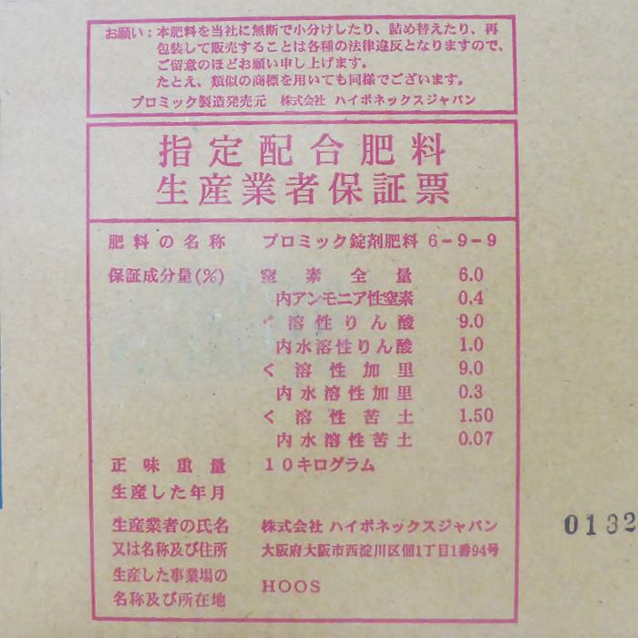 他の画像を見る 【錠剤肥料】【鉢花、野菜苗、ハーブ、花き類に】 ハイポネックス 鉢物専用肥料 プロミック錠剤 遅効き 6-9-9 小粒 10kg 販売価格 ¥ 12,650 税込 カートに入れる お気に入りに登録する (0)