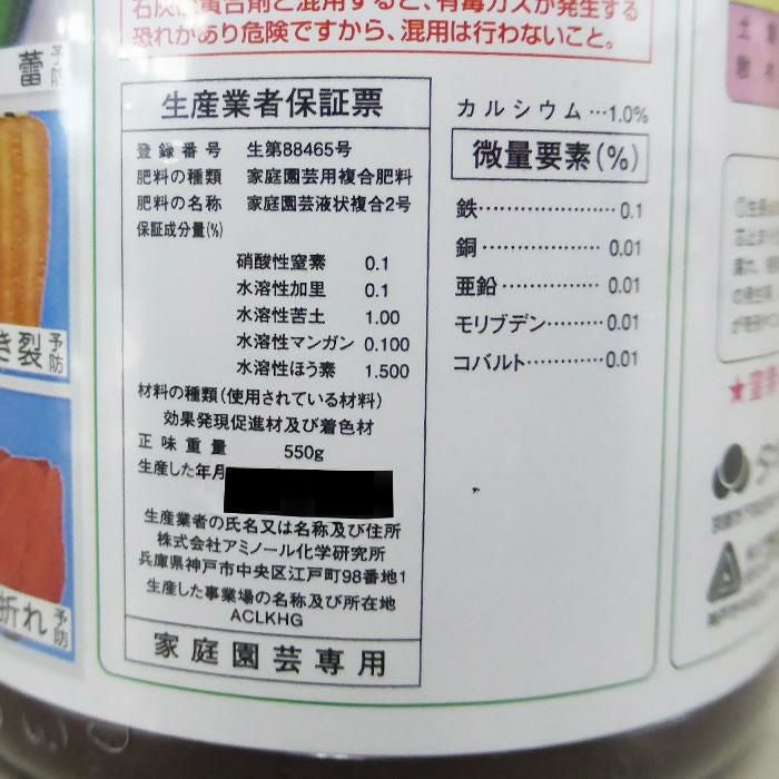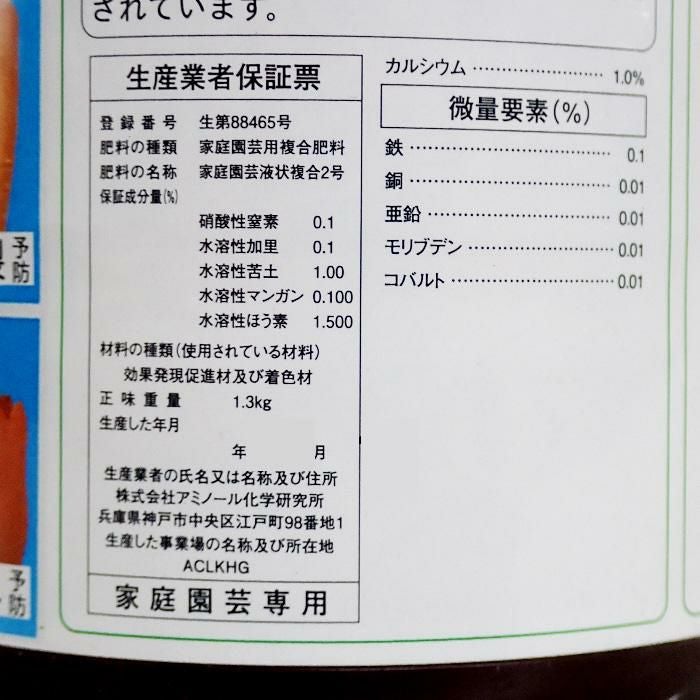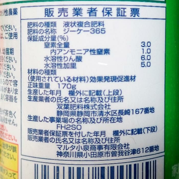 他の画像を見る 【あらゆる作物に効果抜群の速効性液肥】 天然動物質有機エキス トップドレッシング 3-6-5 液肥 170g 販売価格 ¥ 2,500 税込 カートに入れる お気に入りに登録する (0)