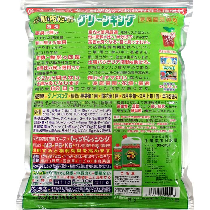 他の画像を見る 盆栽 菊 洋ラン 山野草 観葉植物 バラ 家庭菜園 天然動物質有機肥料 グリーンキング 6-5-2 微量要素 1kg 販売価格 ¥ 1,580 税込 カートに入れる お気に入りに登録する (0)