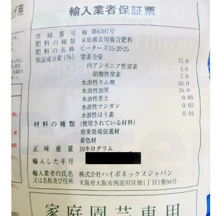 他の画像を見る 【ポインセチア仕上げ用】【各種微量要素入り】 ハイポネックス液肥 ピータース粉末液肥 15-20-25 10kg 販売価格 ¥ 18,810 税込 在庫切れ 詳細を見る お気に入りに登録する (0)
