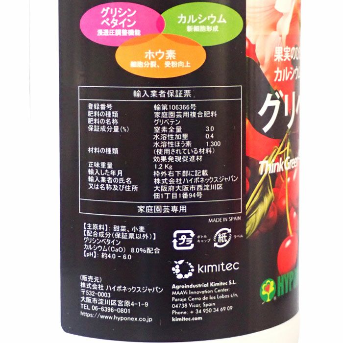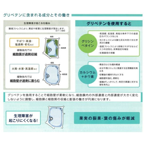 他の画像を見る 【果実のひび割れ・カルシウムやホウ素欠乏の軽減に】 ハイポネックス グリベテンNK 1L GLYBETEN バイオスティミュラント資材 販売価格 ¥ 5,800 税込 カートに入れる お気に入りに登録する (0)