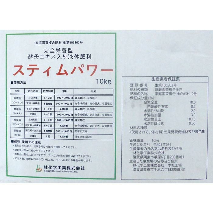 他の画像を見る 【生育促進・光合成促進・有用微生物の活動向上】 完全栄養型 酵母エキス入り液体肥料 スティムパワー 10kg 販売価格 ¥ 23,100 税込 カートに入れる お気に入りに登録する (0)