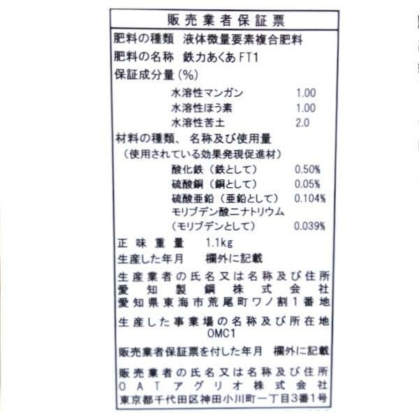 他の画像を見る 鉄イオンとマグネシウムイオンを安定供給し光合成促進 OAT 液体微量要素複合肥料 鉄力トレプラス 1L 葉面散布 潅注処理 2価鉄供給材 販売価格 ¥ 3,950 税込 カートに入れる お気に入りに登録する (0)