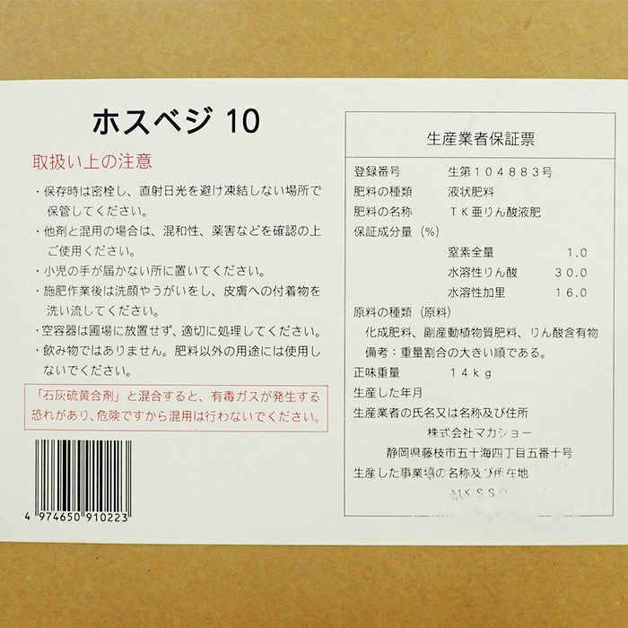 他の画像を見る 【鉢物、花苗、野菜苗、切花、野菜、果樹用】 ハイポネックス 緩効性肥料(コーティング肥料) オスモコートエグザクト スタンダード 16-9-12 肥効期間3~4ヵ月 25kg 販売価格 ¥ 29,480 税込 カートに入れる お気に入りに登録する (0)