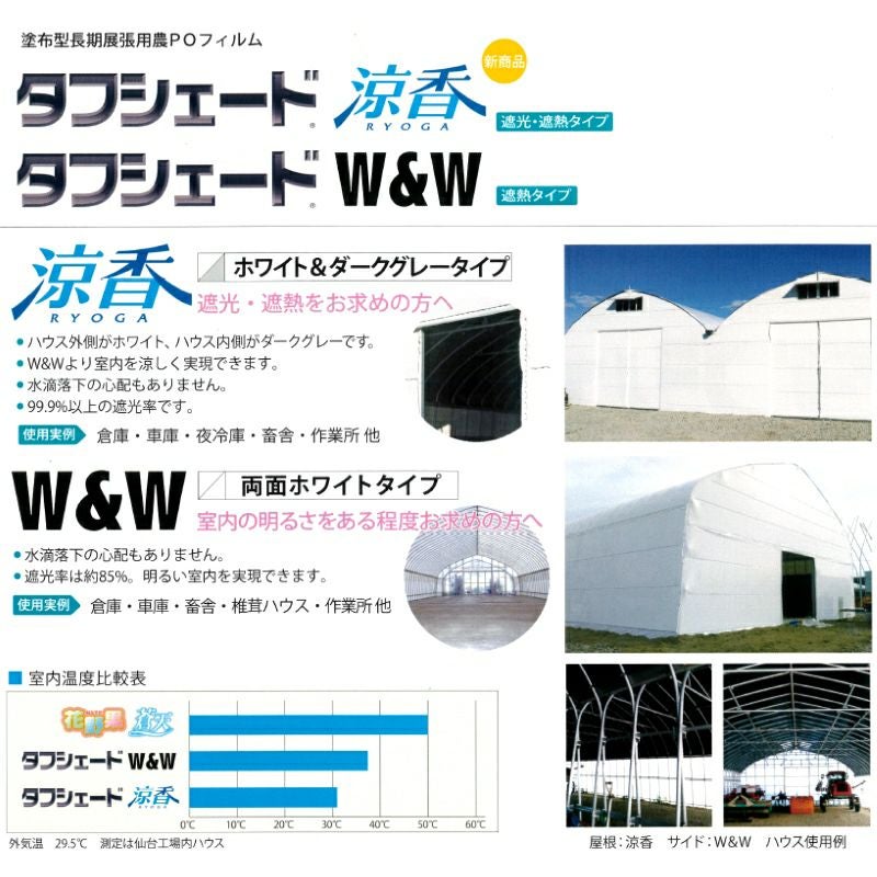 他の画像を見る 【住化積水フィルム】【送料無料対象外】長期展張用 流滴剤塗布型遮光フィルム タフシェード 涼香 ホワイト×グレータイプ 厚さ0.15mm 幅を選択し数量に長さ(m)を入力 販売価格 ¥ 1,084 税込 〜 販売価格 ¥ 税込 詳細を見る お気に入りに登録する (0)