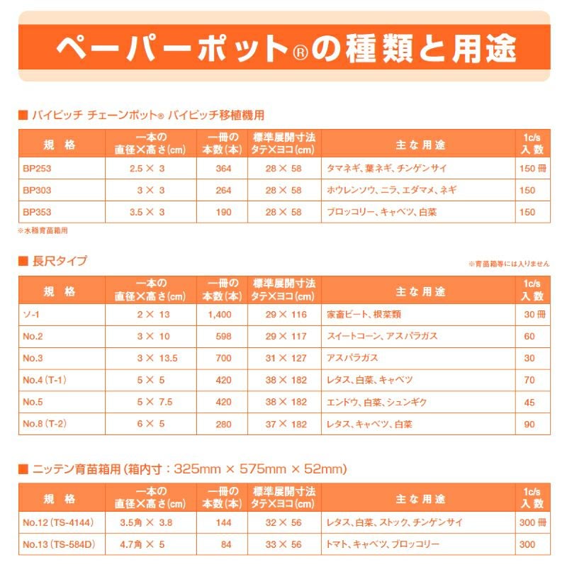 他の画像を見る ニッテン ペーパーポット No.8 8号 径6cm×高5cm 四角 穴数280 長尺タイプ 1冊 レタス キャベツ 白菜 販売価格 ¥ 550 税込 カートに入れる お気に入りに登録する (0)