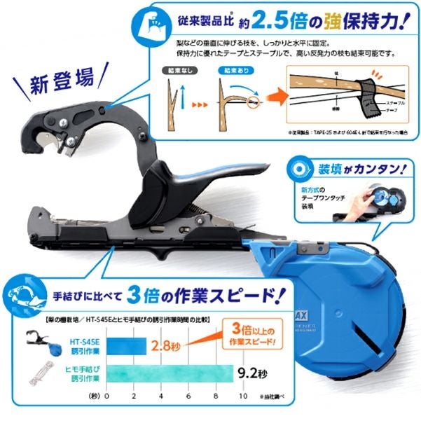 他の画像を見る 梨やブドウをはじめとする果樹や、苗木の誘引に最適! 園芸結束機 MAX マックス 強保持力テープナー HT-S45E 販売価格 ¥ 21,580 税込 カートに入れる お気に入りに登録する (0)