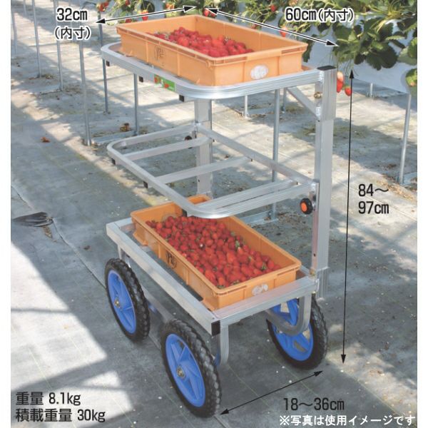 HARAX ハラックス 愛菜号 SW-312 アルミ製 いちご収穫用ワゴン 3段タイプ 最大使用荷重30kg 運搬車