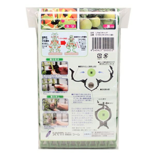 他の画像を見る 【支柱誘引作業が紐で縛らず労力大幅軽減!!】 シーム 誘引クリップ しちゅうキャッチ16 (支柱径16ミリ用) 緑 300個入 販売価格 ¥ 5,280 税込 カートに入れる お気に入りに登録する (0)