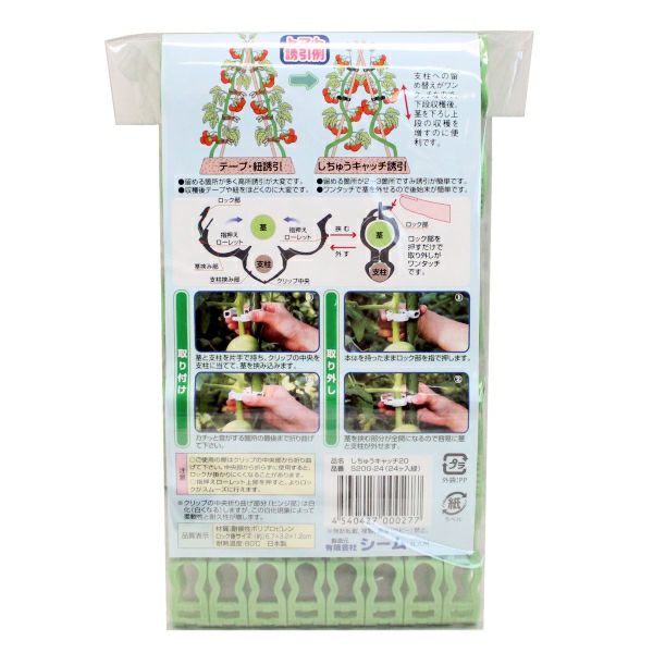 他の画像を見る 【支柱誘引作業が紐で縛らず労力大幅軽減!!】 シーム 誘引クリップ しちゅうキャッチ20 (支柱径20ミリ用) 緑 300個入 販売価格 ¥ 5,280 税込 カートに入れる お気に入りに登録する (0)