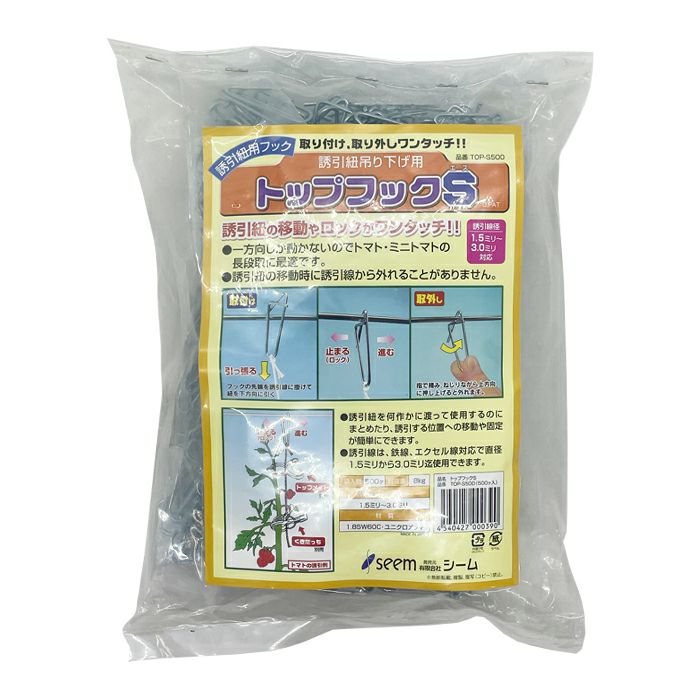 他の画像を見る 【誘引線ロック機能付】 シーム 誘引紐吊り下げ用 トップフックS 500個入り (21mm×40mm φ1.8mm) 販売価格 ¥ 9,900 税込 カートに入れる お気に入りに登録する (0)