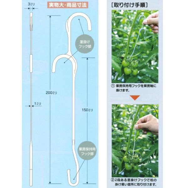 他の画像を見る 【誘引線ロック機能付】 シーム 誘引紐吊り下げ用 トップフックM 500個入り (23mm×50mm φ2.0mm) 販売価格 ¥ 9,900 税込 カートに入れる お気に入りに登録する (0)