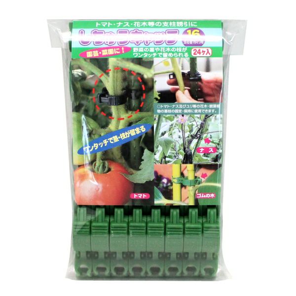 誘引クリップ しちゅうキャッチ16 (支柱径16ミリ用) 緑 24個入