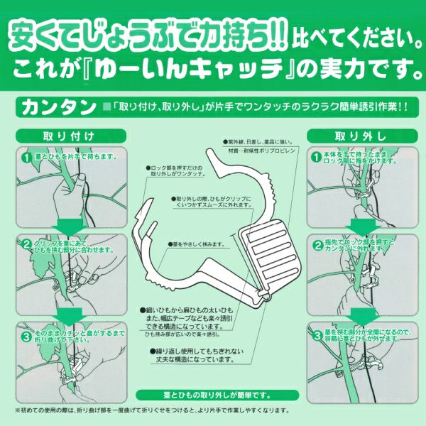 他の画像を見る 【作業効率と経済性を実現した夢の誘引クリップ!】 シーム ひも誘引クリップ ゆーいんキャッチ 白 200個入 販売価格 ¥ 3,250 税込 カートに入れる お気に入りに登録する (0)