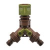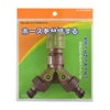 万能口金やネジ口金などに接続し、ホーセンドの付いたホースを二方向に分水に出来る散水接手です。